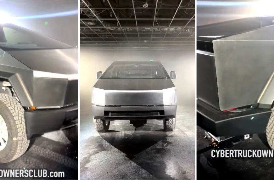 У мережу злили відео, де електричний пікап тестують із позашляховим режимом. Дорожній просвіт цього Cybertruck значно збільшений, що дозволить йому перетинати глибокі броди та їздити по воді. При цьому колеса виглядають дуже безглуздо на загальному тлі авто.