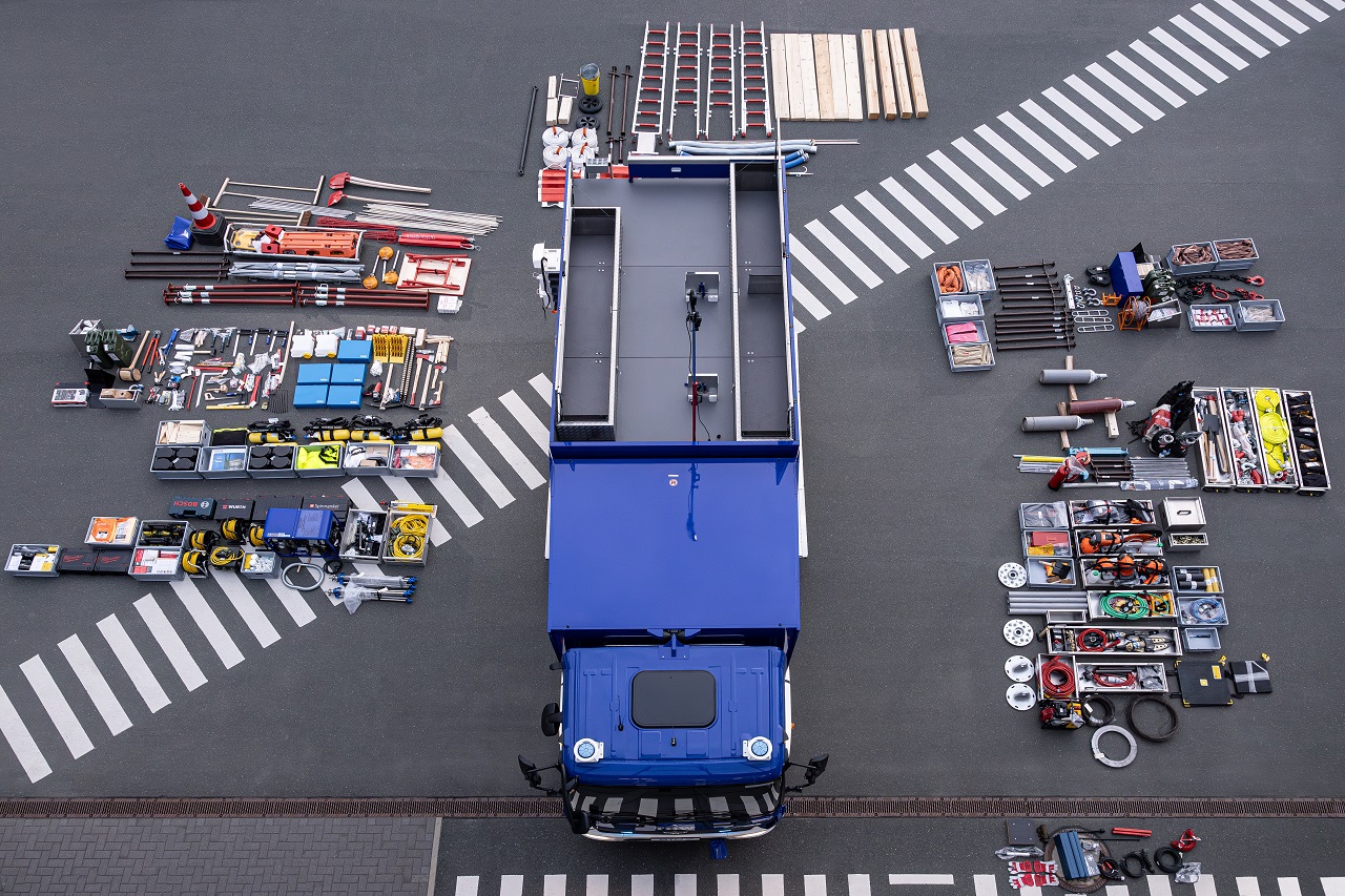Машина комплектується великим набором аварійно-рятувального інструменту для роботи з деревом, металом та бетоном. В обладнання також входять електрогенератор та насосно-шлангові системи.