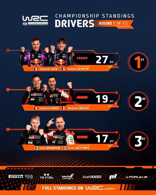 І ось той випадок, який трапляється, можливо раз на 50 років. Саме тому ми зробили такий довгий вступ. Тому що за них уболівали, але ніхто не ставив на такий успіх. Можливо, максимум на подіум. Але більшість, хто наважився зробити передбачення на переможця (перший, другий, третій), вважав за такого саме чинного Чемпіона Світу Себастьєна Ож’є. І гонщик виправдовував очікування. Він та його новий штурман Бенжамен Вейяс завершили лідерами перші два нічні допи у четвер, а тоді й суботній вечір. Єдину конкуренцію дуету міг скласти саме Себастьєн Льоб. І нехай з новою штурманесою – Ізабель Ґальміш, але справно це робив. Більше того, саме Льоб схиляв, час від часу, перевагу на свою користь. У п’ятницю його дует був найкращим із перевагою в 10 секунд над іншим Себом. Той знайшов чим відповісти. У певний момент часу чинний Чемпіон відірвався на 24,6 секугди на 15-ому відрізку. І саме тут чогось не вистачило. На СД16 у Toyota GR Yaris Rally1 Ож’є/Вейяса відбувся прокол покришки. Боротьбу завершено? Ні в якому разі! На «павер стейджі» гонщики скорочують відрив до 0,5. Але Ож’є та Вейяс тільки другі. Ще й 10 секунд за фальстарт здобули. І, в свою чергу, це означало перемогу Себастьєна Льоба – 80 в його кар’єрі! І першу для Ford Puma Rally1 в новій ері. Враховуючи, що рівно 20 років тому Льоб та Елена уперше перетнули фінішну стрічку змагань в князівстві першими в абсолюті (але отримали штраф у 2 хв), а Ford Puma S1600 була найкращою в заліку JWRC, можна сказати, що історія повторюється. Власне, як і у випадку з Ізабель Ґальміш. Бо саме це ралі починало WRC 1973-ого. Першим штурманом-переможцем етапу в історії стала Мішель Петі. Її успіх зі стартом ери WRC повторила Фабріція Понс у 1997-ому (пілотами відповідно були Жан-Клод Андрю на Alpine-Renault A1800 та П’єро Ліатті на Subaru Impreza WRC). І тепер щось подібне трапилося для Ізабель…