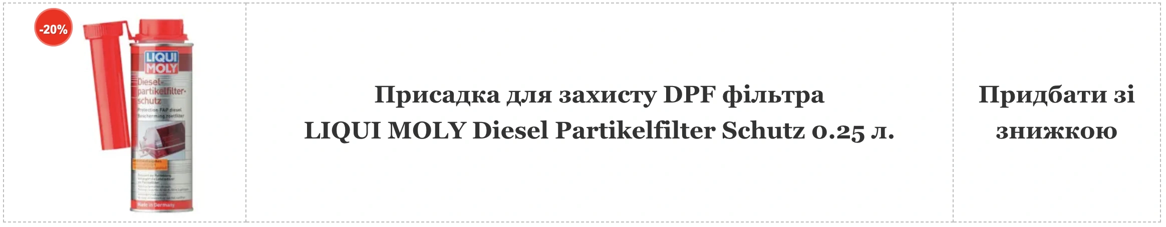 - Проводьте профілактичну очистку – використовуйте спеціальні присадки, такі як Diesel Particulate Filter Schutz від німецького бренду LIQUI MOLY, що допомагають ефективно спалювати сажу та знижувати накопичення відкладень.