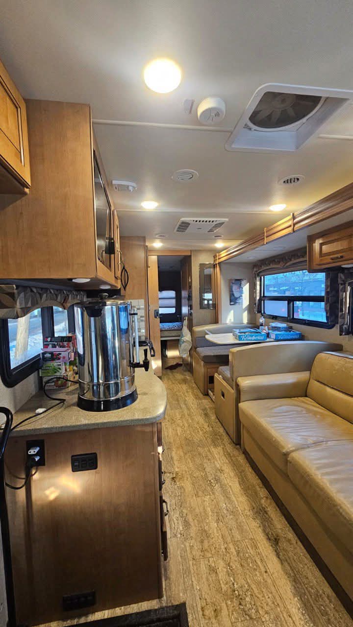 Цей Пункт Незламності, один із багатьох, які сьогодні розгорнуті в Україні та Києві зокрема, виглядає досить незвичайно. Вся справа в тому, що він мобільний і облаштований на базі розкішного кемпера. Цей будинок на колесах називається Hurricane (Ураган) і виготовлений 2016 року американською компанією Thor. Навесні 2023 року ця машина вже засвітилася на вулицях Києва у складі автопробігу “Парад Добрих Справ”, організованого за підтримки головного рабина України Моше Реувен Османа.