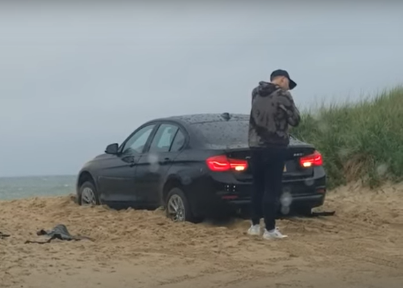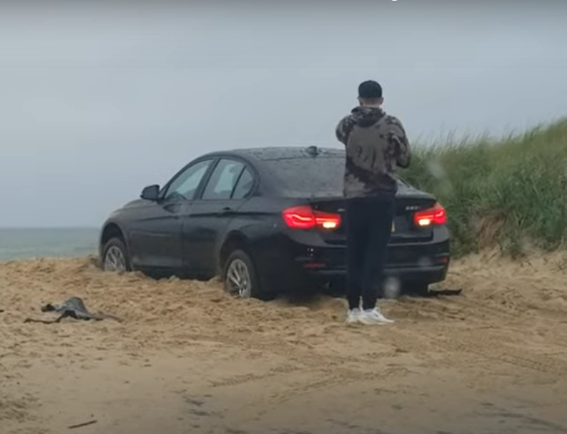 Як не варто поводитися зі своєю машиною на узбережжі, продемонстрував власник чорної BMW 3-series. Молодий чоловік зупинився на своєму повнопривідному седані буквально за декілька кроків від води. Коли ж він зібрався їхати і увімкнув задню передачу на АКПП, автомобіль буквально загруз колесами в піску. Вирішивши оцінити ситуацію, хлопець вийшов з машини і зачинив за собою двері. На жаль, потрапити назад йому вже не вдалося — ключі, звісно, залишилися всередині.