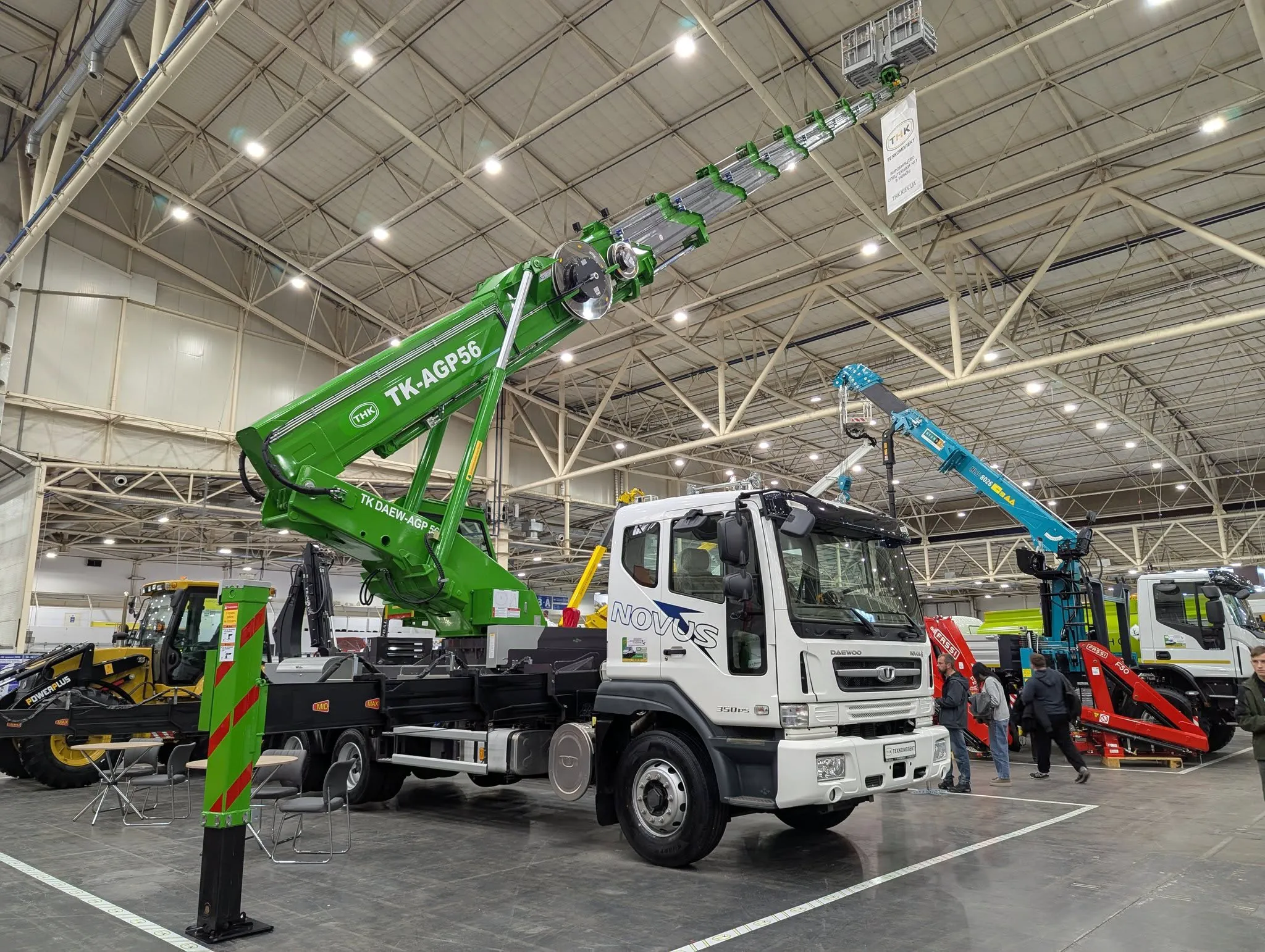 Головною новинкою, що вперше демонструється на виставці в Україні, є автогідропідйомник ТK-DAEW-AGP-56 від південнокорейського виробника Hansin. Його телескопічна стріла забезпечує робочу висоту 55 м та виліт 25 м. Вантажопідйомність кошика становить 500 кг. Керування здійснюється із комфортабельної, закритої кабіни оператора. Застосовується тривісне шасі Daewoo CL7CL колісної формули 6х4, що розраховане на повну масу 29 т та оснащене турбодизелем потужністю 320 к. с.
