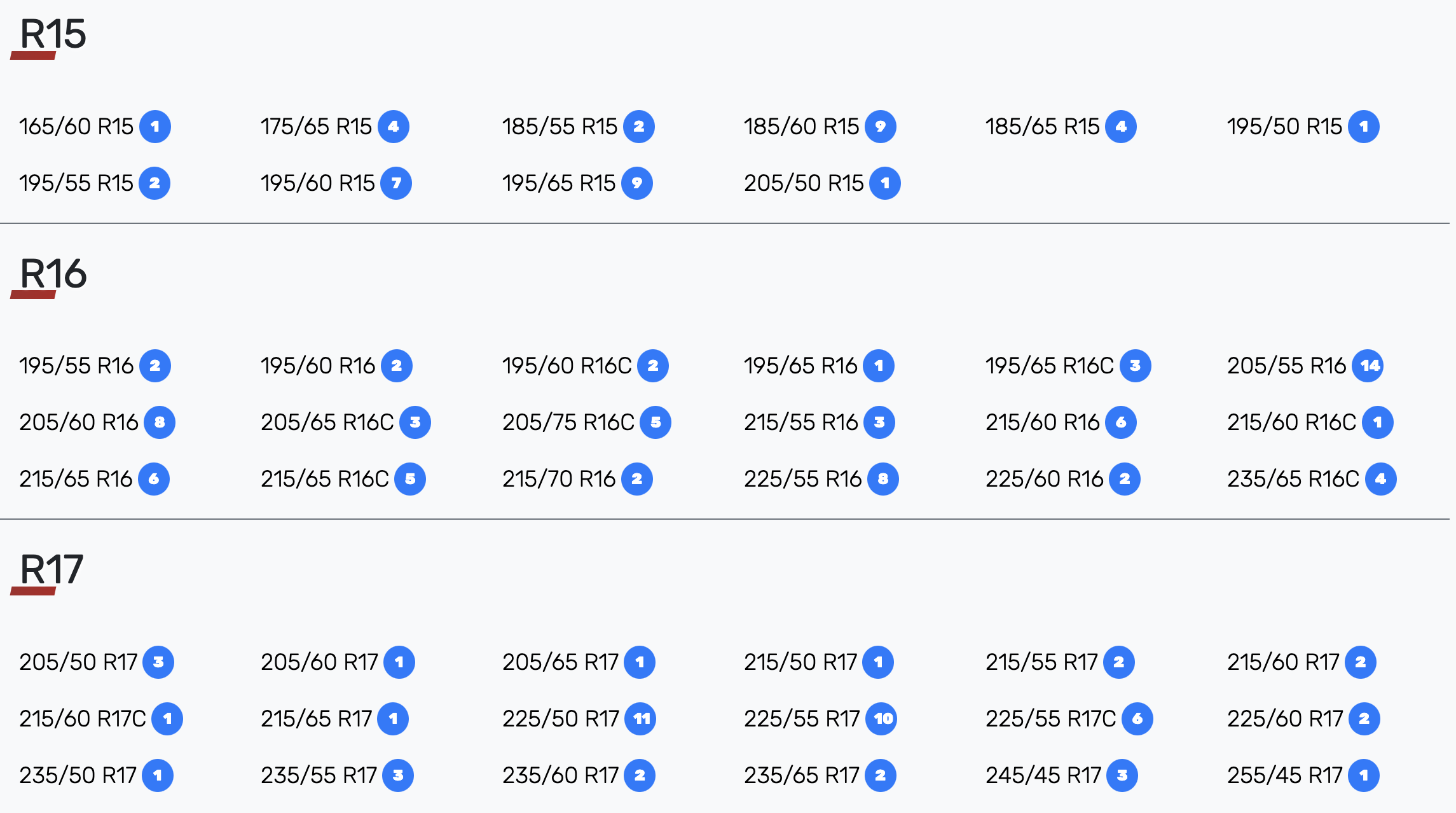Основні критерії вибору вживаних шин ті ж самі, що й нових: розміри та специфіка характеристик. Проблем у цьому плані в українських дилерів гуми з Європи немає, бо легковий та легкокомерційний автопарк України збігається з рухомим складом інших європейських країн. Тобто в асортименті є всі популярні у нашій країні типорозміри.