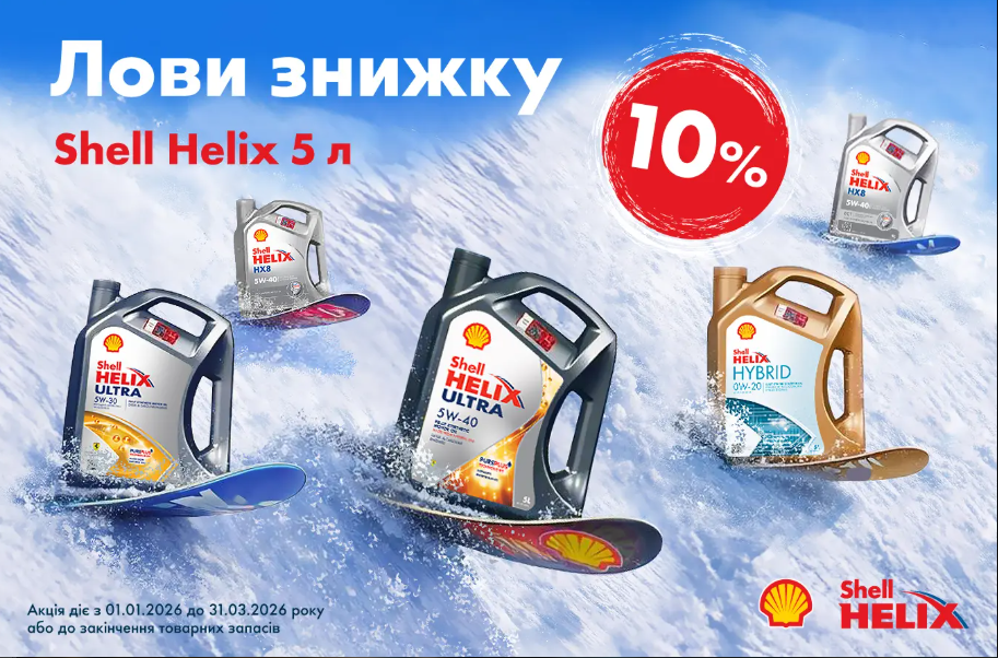 Зима вимагає впевнених рішень. Моторні оливи Shell Helix допомагають двигуну швидко прогріватися, стабільно працювати та бути захищеним у мороз. Скористайтеся вигідними зимовими пропозиціями, отримайте додаткові переваги та долучайтеся до розіграшу цінних призів. Подбайте про свій автомобіль — використовуйте оригінальні оливи Shell Helix.