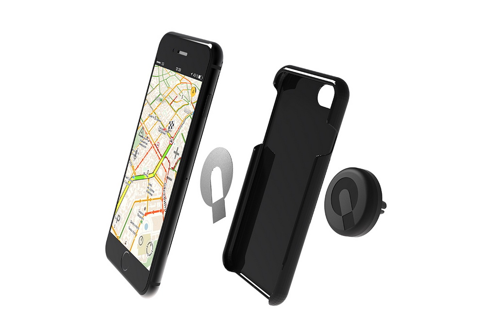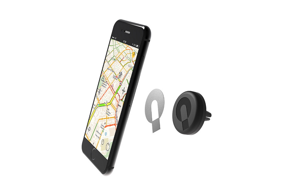 Смартфон крепится на автомобильный держатель с помощью нескольких составляющих: 4 неодимовых магнитов стандарта N52 (усилие 1,5 кг.) и металлической пластины, которая крепится на заднюю крышку смартфона, на чехол или под чехол, на скотч 3М. Благодаря этим двум составляющим гаджет надёжно фиксируется на держателе. Сам процесс установки смартфона занимает не больше 2 секунд. Магнитный автодержатель QLAX подходит для смартфонов весом до 240 грамм и диагональю экрана до 5,5 дюймов.