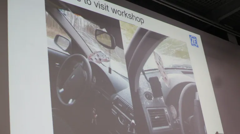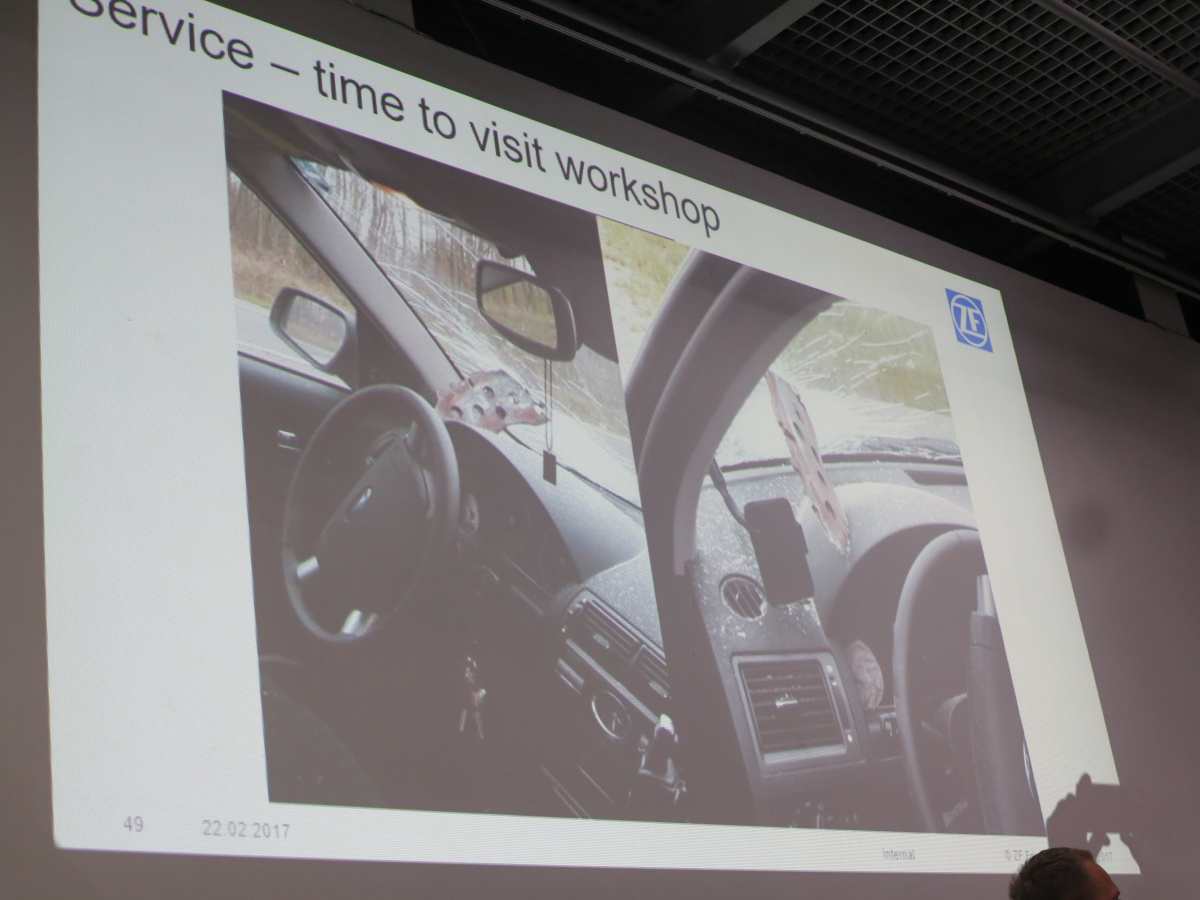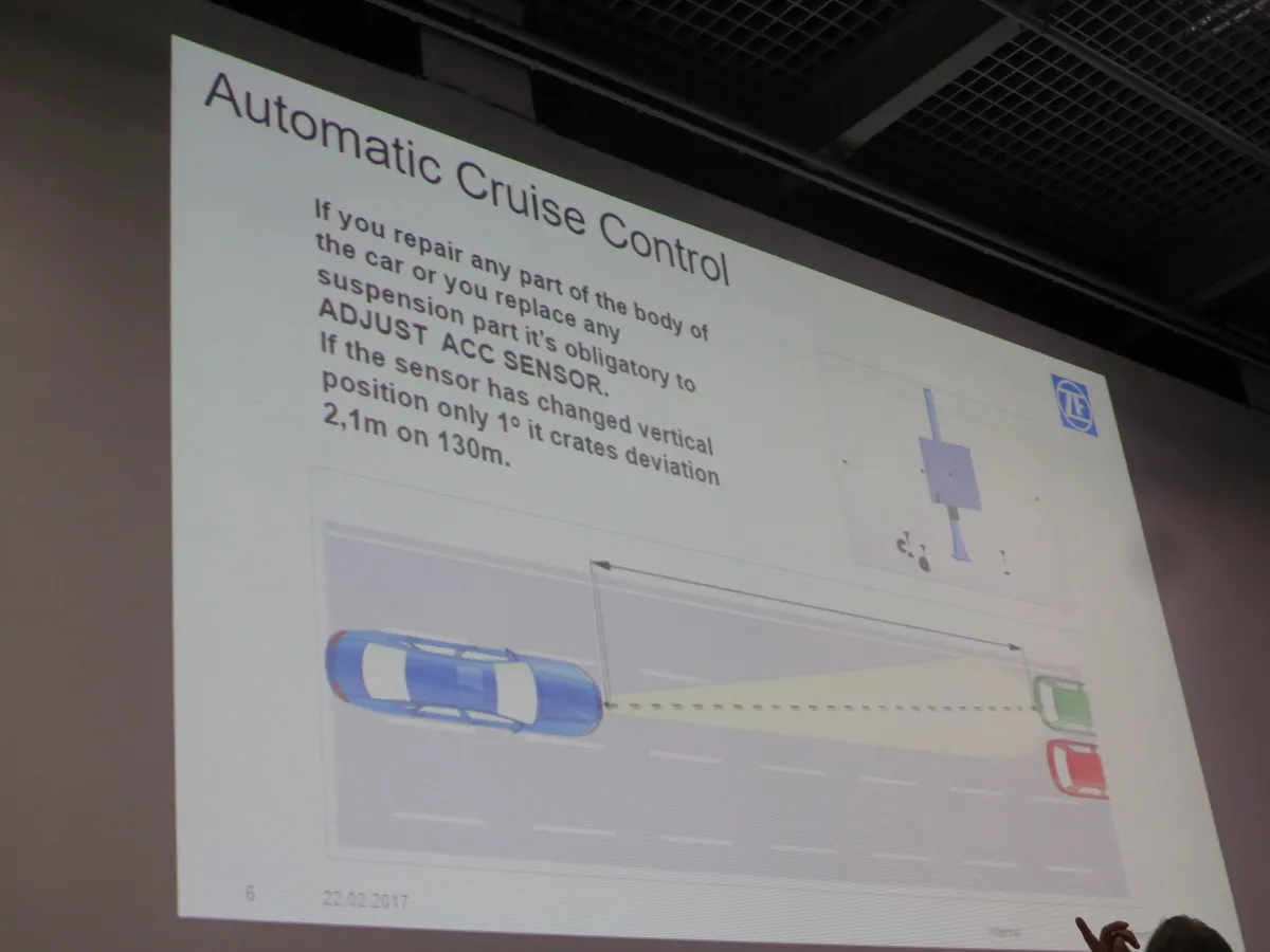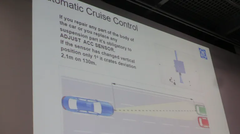 Начнем с тормозных систем, о которых рассказал технический тренер ZF Aftermarket по продукции TRW – Михал Глазевский (Польша). Начнем с того, что тормозная система современного автомобиля сегодня интегрирована с различными другими системами, в том числе и активной безопасности. И одна из них – адаптивный круиз контроль. Отклонение радара всего на 1 градус ведет к колоссальной погрешности на дистанции 130 метров – отклонения в сторону на 2,1 м, что равняется целой полосе движения.