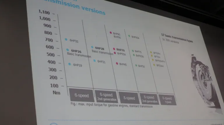 Теперь остановимся на автоматических коробках передач ZF 6HP/8HP – cоответственно 6-ти и 8-ступенчатых. Эти коробки сегодня встречаются в 17 базовых типах и 769 версиях. Официальные рекомендация от производителя – замена масла через 80 – 120 тыс. км, или максимум раз в 8 лет. Для СТО производитель предлагает специальные кит-комплекты для замены масла, которые включают масло (до 7 л), поддон и крепежные болты. Для замены масла лучше всего использовать промывочные машины. Не лишней будет и двойная замена масла. А вот различные очистители нужно использовать весьма осторожно, так как они в основном агрессивные компоненты, которые могут разъесть диски сцепления, изготовленные из прессованной бумаги. ZF рекомендует использовать в своих автоматических трансмиссиях только сертифицированные масла, перечень которых можно найти в поиске google, набрав te-ml11