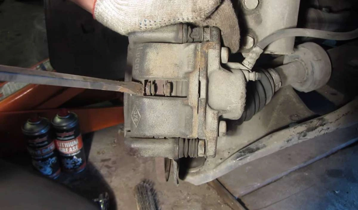 4. Плоскою викруткою піддіньте старі колодки і демонтуйте їх. Відокремте протискрипні пластини. Необхідно змастити пластини тонким шаром мастила.