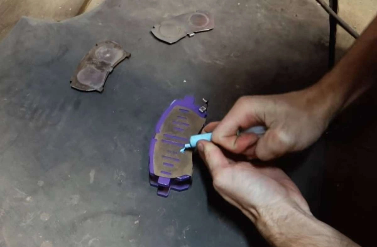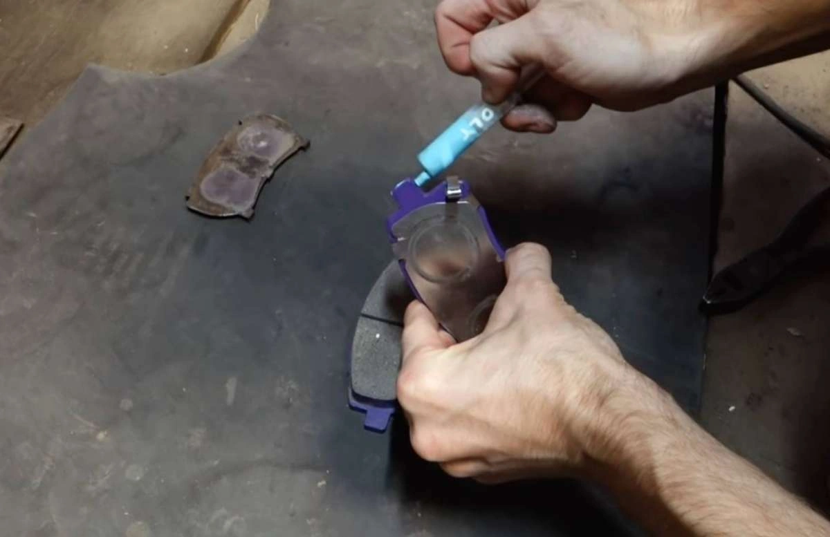 7. Підготуйте нові колодки. Нанесіть мастило на вушка колодок і ті місця, на які кріпляться протискрипні пластини.