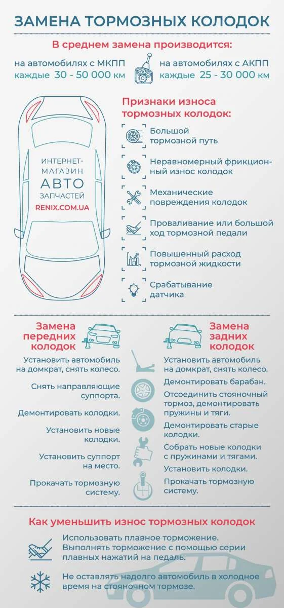 Рекомендується кожні 10 тисяч кілометрів пробігу перевіряти всю гальмівну систему, особливу увагу приділяючи гальмівним колодкам. Пам’ятайте: передні колодки зношуються швидше за задні.