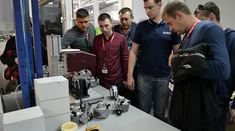 Далеко не все производители газобаллонного оборудования готовы принимать гостей на своем производстве. Компания Alex – одна из немногих, предоставляющих возможность установщикам ГБО воочию ознакомиться с одним из самых современных производств компонентов газобаллонного оборудования. Вот и этой весной официальный дилер Alex компания Мотор Газ организовала посещение завода для многочисленной группы специалистов «газового дела», которые здесь же приняли участие в семинаре, посвященном детальному изучению возможностей настройки новой электроники Expert.