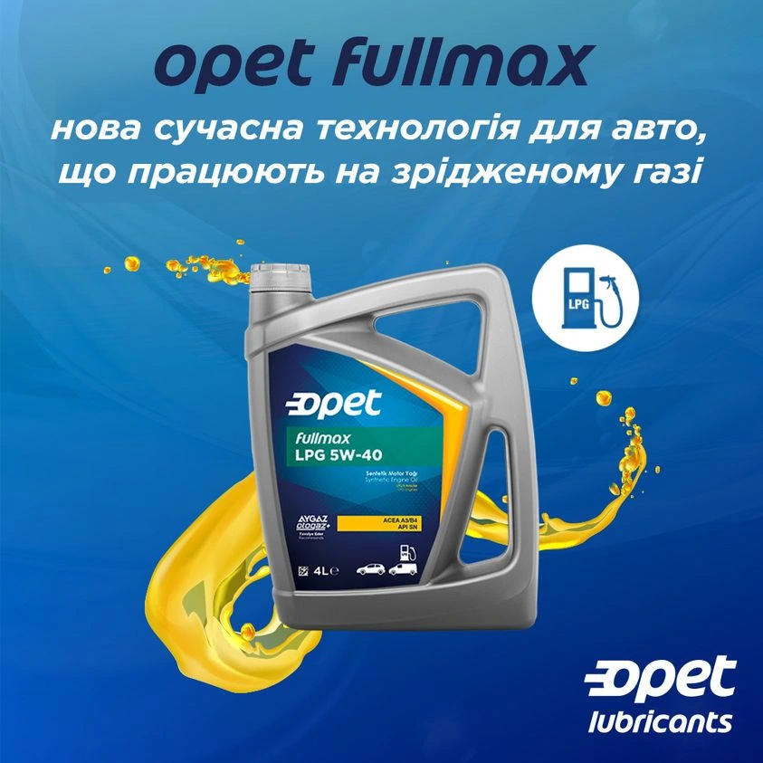 Відразу декілька спеціальних «газових» моторних олив є, наприклад, в продуктовій лінійці компанії OPET. Це сорти з різною базовою основою в різних, найбільш поширених в Україні класах в'язкості. Це повністю синтетична олива Fullmax LPG 5W-40 (ACEA A3/B4; API SN), олива на синтетичній основі Fullmax LPG 10W-40 (ACEA A3/B4; API SL/CF) та олива на синтетичній основі Fulllife LPG 5W-30 ( ACEA A5/B5, A1/B1; API SL/CF; Renault RN 0700).