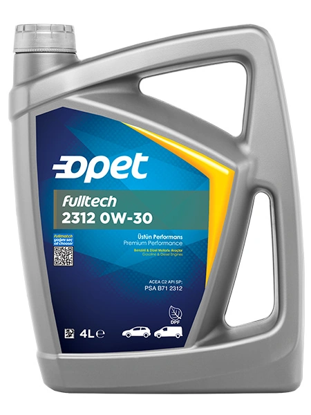 Повністю синтетична моторна олива Opet Fulltech 2312 0W-30, розроблена для сприяння високій економії пального. Відповідно олива малов’язка, а для утримання екологічних параметрів було знижено її зольність (середньозольна група). Відповідає вимогам до продуктивності бензинових та дизельних двигунів автомобілів останнього покоління групи PSA.