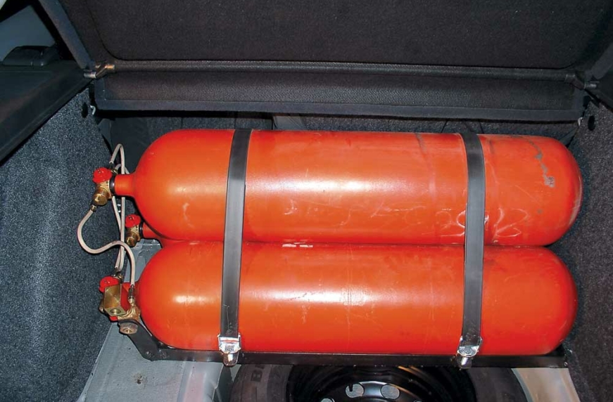 Метановые баллоны только цилиндрические, а вот пропан-бутановые бывают и тороидальными под нишу запасного колеса. Но «торы» не оснащаются электронным датчиком уровня газа. |