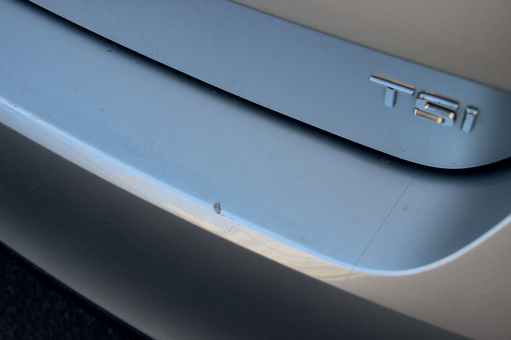 Обклеїти бампер у навантажувальному отворі багажника – хороша ідея. У такому практичному авто, як Rapid з його величезним вантажним відсіком, ми швидко в цьому переконалися. Під час завантаження чогось важкого бампер зазнав значного удару. В результаті плівка пробита наскрізь, але лак під нею уцілів, в найгіршому разі колись – після видалення плівки – там може знадобитися полірування.