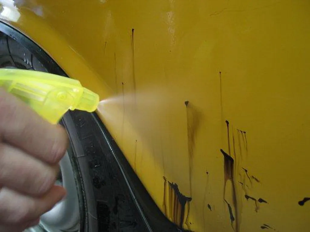 - Спочатку обприскайте препаратом забруднені поверхні кузова, нехай бітумні плями «відкиснуть».