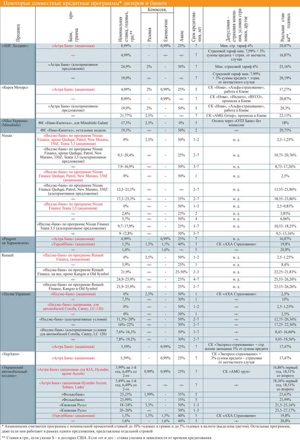 Увы, подобными субсидированными программами пользуются далеко не все производители. Как правило, наиболее активны Nissan, Renault, Citroёn, Peugeot, Toyota. Доступны «нулевые» предложения и у Volkswagen, Audi, Ford, Kіа, Mazda, Chevrolet.