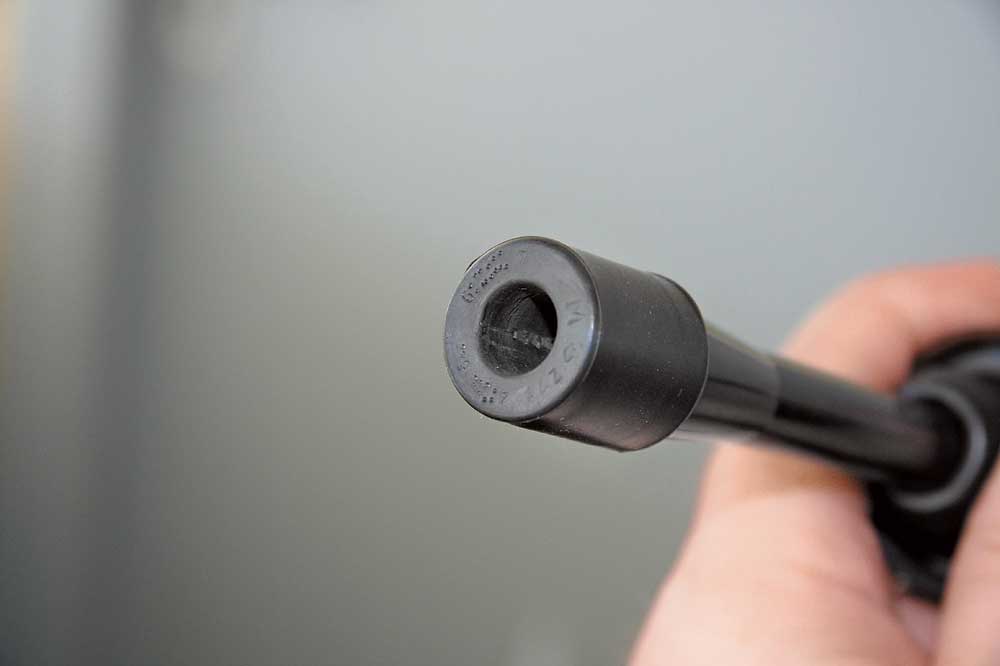 ![]() | След утечки искры иногда можно заметить не только на свече дефектного наконечника, но и на самом наконечнике. |