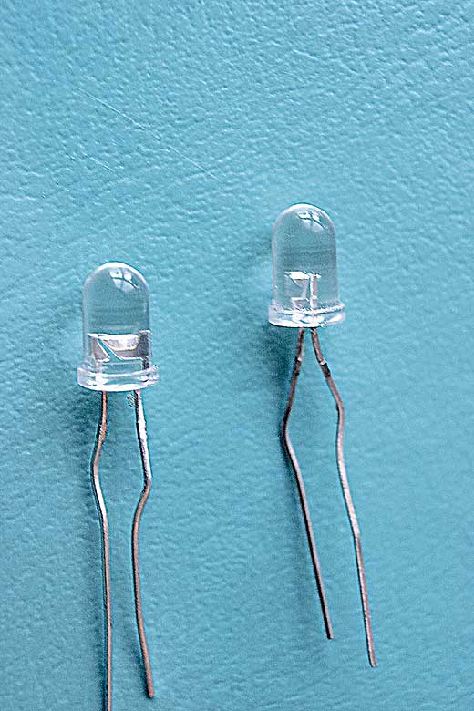 Нелишним будет напомнить, что при подключении светодиода нужно соблюдать полярность – то есть соединять его «плюс» с «плюсом» автомобиля, а «минус» – с «массой». При обратном подключении этот источник света не испортится, но светиться не будет. Выбирая светодиоды, нужно учесть, что они бывают как с направленным, так и с рассеянным излучением, и, скорее всего, вместо ламп освещения приборов лучше устанавливать радиодетали второго типа.