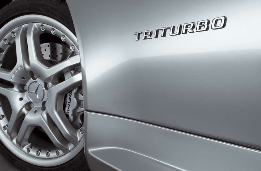 Этот шильдик указывает на наличие под капотом спортивного родстера SLK новейшего высокотехнологичного дизельного мотора с тремя турбокомпрессорами. Трехлитровый двигатель конфигурации V6 с системой непосредственного впрыска топлива Common Rail развивает максимальную мощность 286 л. с. и крутящий момент 630 Нм (при 1750–2700 об/мин). Он был впервые установлен под капотом экспериментальной модели Mercedes-Benz Vision SLK 320 V6 Triturbo, показанной на Женевском автосалоне в 2005 году. Характеристики машины впечатляют: разгон от 0 до 100 км/ч занимает всего 5,2 секунды, а максимальную скорость ограничили на отметке 250 км/ч, при этом средний расход топлива – только 7,5 литра солярки на 100 км пробега. Конструкция агрегата довольно сложна: две маленькие турбины расположены снаружи – на головках половинок блока цилиндров, а еще одна (более крупная) внутри, в V-образном развале. На низких оборотах, когда нагрузки на мотор незначительны, работают все три турбины, но львиную долю воздуха нагнетают маленькие турбины. Чуть позже, с ростом скоростей, большая «старшая сестра» подключается все активнее и при пиковых нагрузках работает в одиночку (маленькие турбины отключаются). Двигатель также снабдили интеркулером увеличенного размера и новой выпускной системой с меньшим сопротивлением выхлопным газам. Такого рода силовой агрегат довольно дорогой в производстве, поэтому на серийных машинах двигатель Triturbo пока не применяется, хотя компания Mercedes-Benz планирует внедрять подобные технологии в массовые модели уже в ближайшее время.