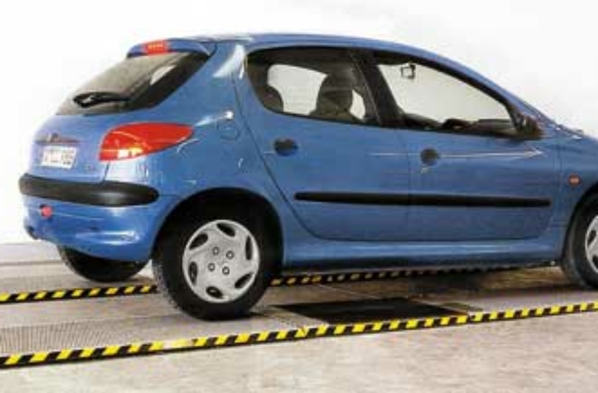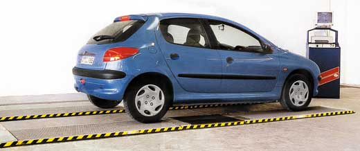 Нельзя не упомянуть о платформенных (площадочных) тормозных стендах. Они являются более экономичным аналогом роликовых, но уступают последним по точности показаний. Платформенные тормозные стенды, как правило, используются на СТО как инструмент входной экспресс-диагностики. Сам стенд представляет собой две полосы плоских металлических платформ толщиной 40 мм, уложенных на уровне пола. Вместо электромоторов, приводов и кинематических пар, как у роликового стенда, платформенный оснащен миниатюрными тензометрическими датчиками. Проверка тормозов здесь отнимает всего одну минуту. Испытания проводятся с имитацией естественных дорожных условий, в динамическом режиме – автомобиль проезжает по стенду со скоростью 5 – 10 км/ч и резко замедляется на платформах. Датчики измеряют приложенную к поверхности платформы силу в течение всего времени торможения. Информация обрабатывается компьютером, благодаря которому можно проследить все текущие значения тормозной силы. Недостатки: нельзя добиться повторяемости результатов, что недопустимо при углубленной диагностике, а из-за ограниченности тормозного пути длиной площадок измерение проводится не по всей окружности тормозного механизма.