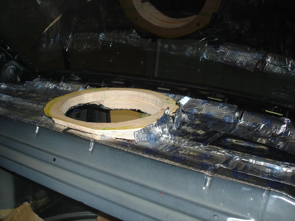 У боротьбі з шумами вібраційного походження головне – перешкодити вібрації кузовних панелей, які, як правило, мають найбільшу площу з усіх інших поверхонь. Тому віброізоляція полягає в обклеюванні відповідними матеріалами плоских ділянок кузова – дверних панелей, перегородок, капотів, крил. Матеріали для віброізоляції працюють за принципом частотного фільтра: вони не усувають шум, а перетворюють його з високочастотного в низькочастотний, менш помітний для людського слуху. Для позитивного результату буває достатньо покрити матеріалом 40% загальної площі «вібронебезпечних» кузовних панелей. Технічно ці матеріали зазвичай представляють собою мати на бітумній основі – вони роблять лист металу важчим, перешкоджаючи його високочастотній вібрації. Іноді в масу бітуму додають полімер – він позбавляє бітумний шар хрусткого призвуку під час роботи аудіосистеми в мороз. Наклеєна поверх бітуму фольга ще більше ускладнює оброблений метал, однак такий сендвіч потребує високої кваліфікації під час укладання, щоб під матом не залишилося повітря, яке може викликати корозію.