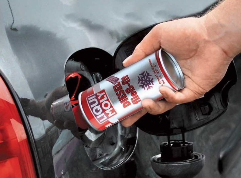 Вместе с тем, депрессорные присадки полезны и для зимней солярки – они улучшают ее работу в холодную погоду, а также понижают температуру помутнения и застывания. Поэтому если надвигаются сильные морозы, то антигель рекомендуют доливать и в бак с зимним дизтопливом. Например, антигель Diesel fliess-fit от Liqui Moly обеспечивает работоспособность дизельного топлива до температуры -31°С.