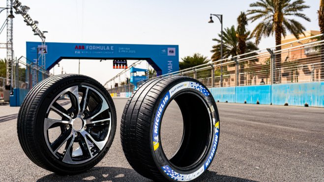 Компания Мишлен, которая является одним из партнеров-основателей «зеленого» гоночного чемпионата «Формула-Е», предложила для «гражданских» электрокаров решение, концептуально близкое к дорожной шине. Новую гоночную шину компании «Мишлен» для «Формулы-Е» можно эксплуатировать при любых погодных условиях, а ее размерность с посадочным диаметром 18 дюймов отвечает действующим требованиям к дорожным шинам.