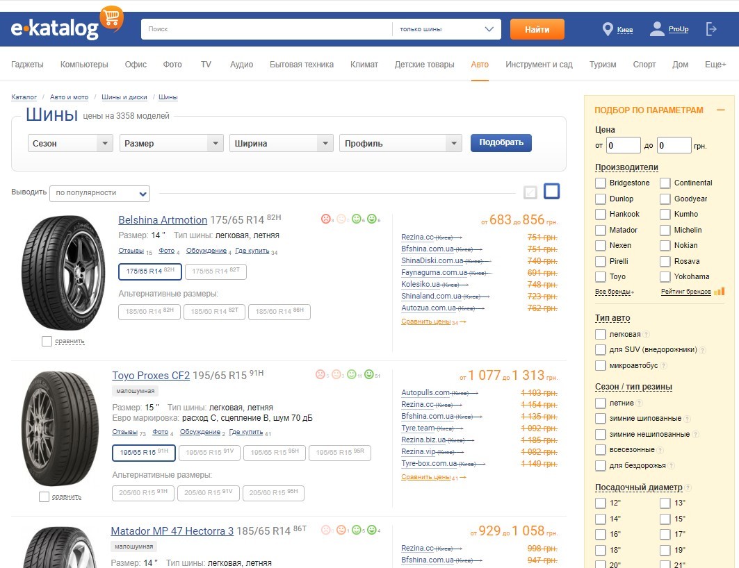 Е-каталог экономит не только время. Для каждой модели шин собран список магазинов с актуальными ценами. Он поможет выбрать: