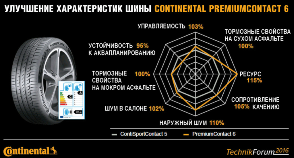 Також була мета довести рівень зчіпних властивостей на мокрому асфальті у моделі PremiumContact 6 до рівня класу А відповідно до нещодавно введеної європейської класифікації шин на так званих «Євроетикетках» (EU Tire Label).