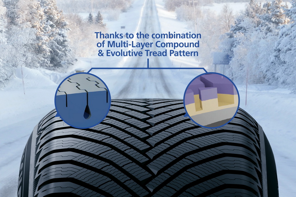 Завдяки таким елементам на протекторі Michelin Alpin 7 особливо добре показує себе в умовах типової української зими – за плюсової чи коло нульової температури, коли на дорозі як не вода, то мокрий сніг навпіл з піском і сольовими реагентами.