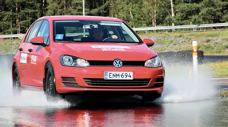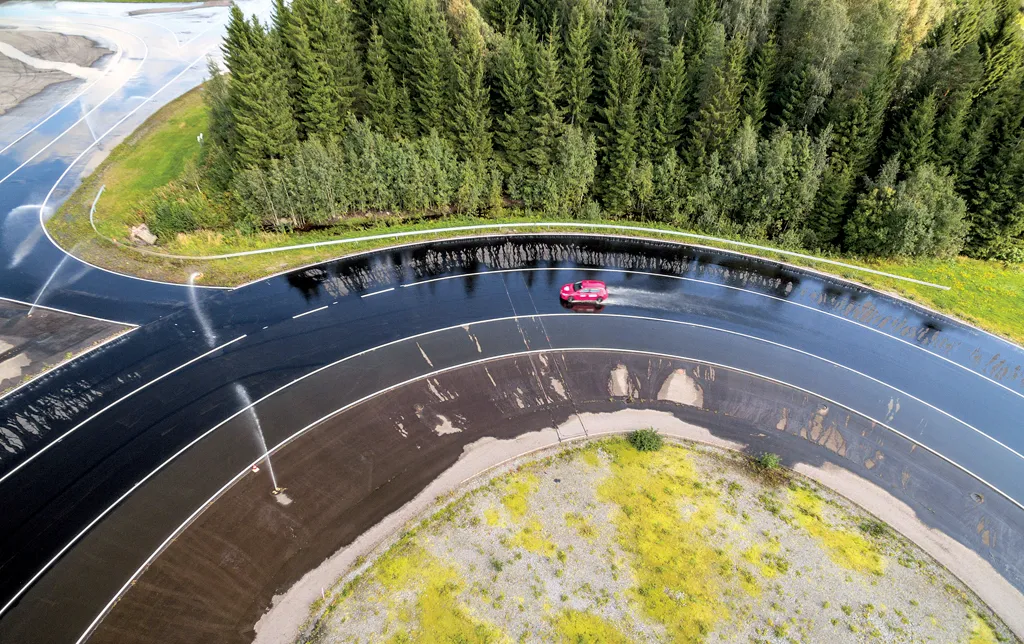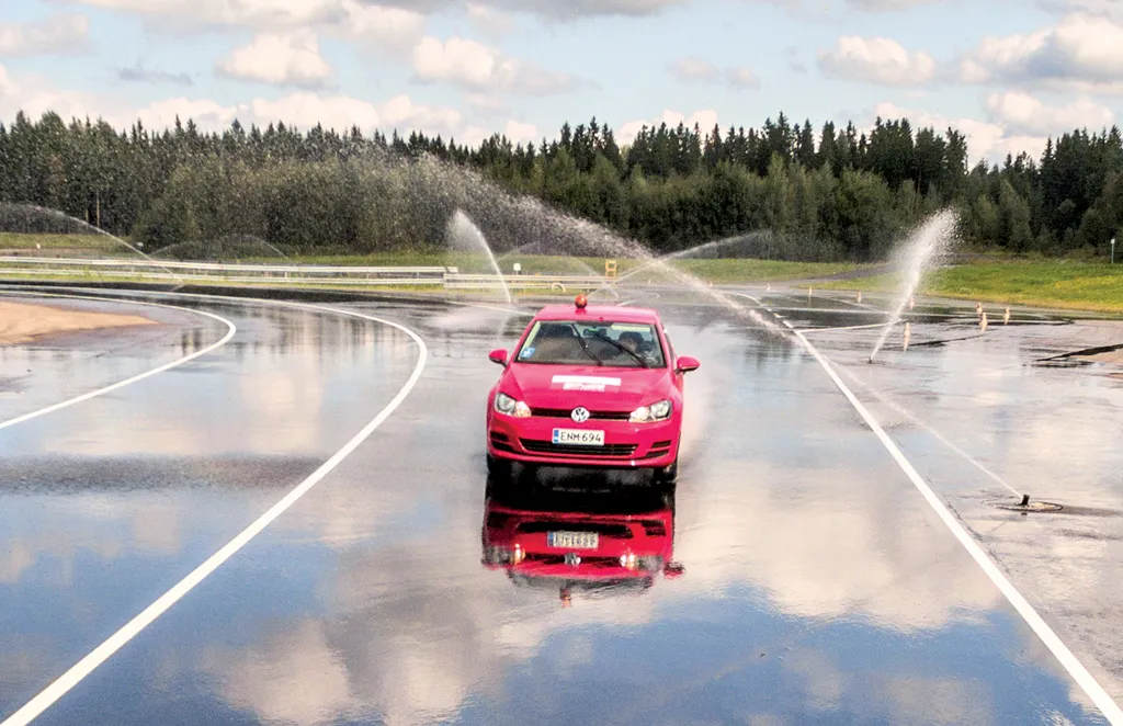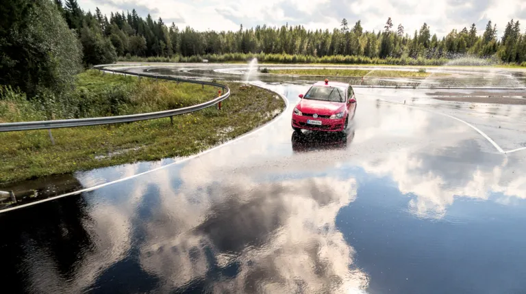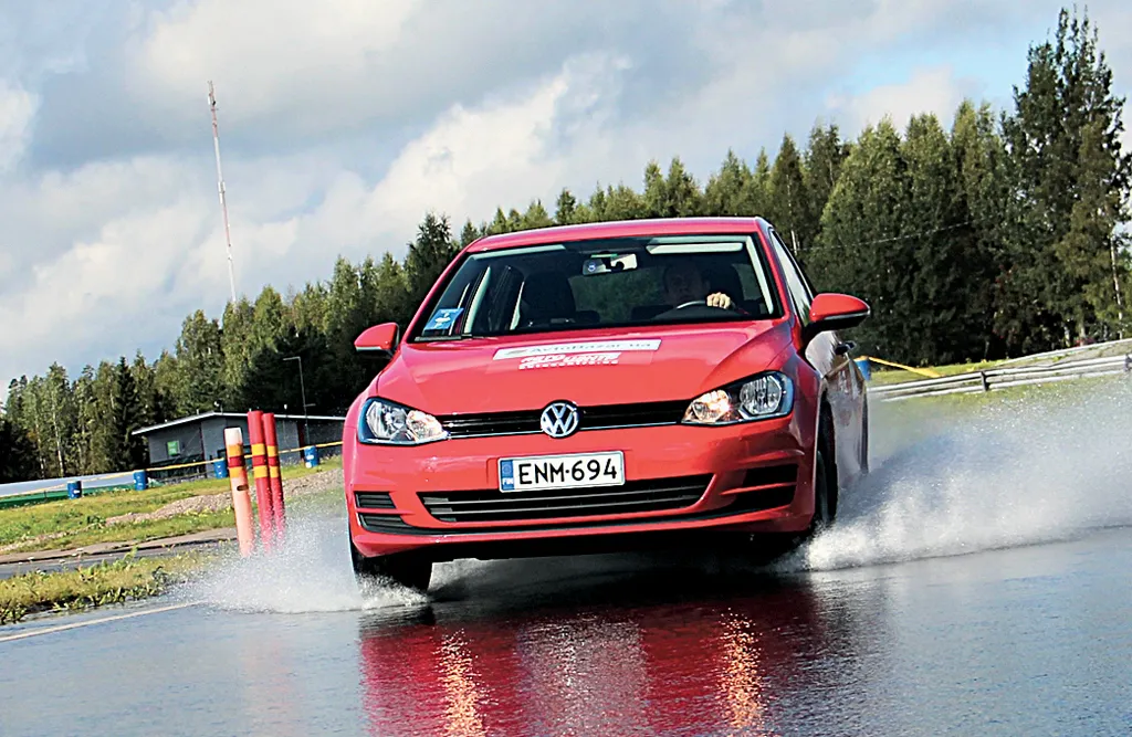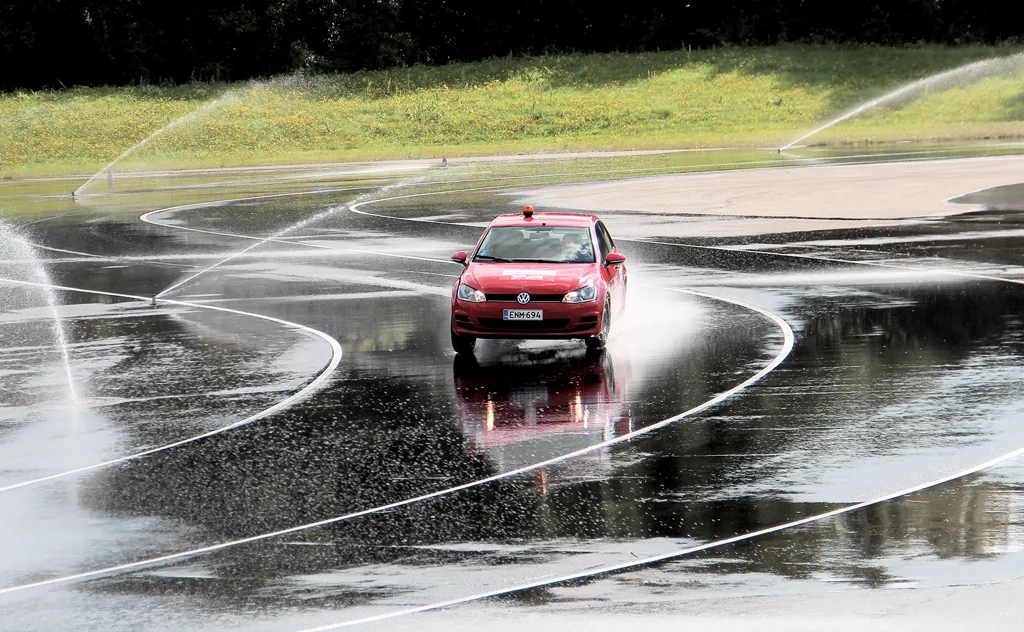 На прямій оцінювався початок прослизання коліс однієї сторони авто під час розгону. Цей момент визначався за допомогою спеціального обладнання, що порівнює кутові швидкості коліс. Покришки другої сторони котилися мокрим асфальтом.