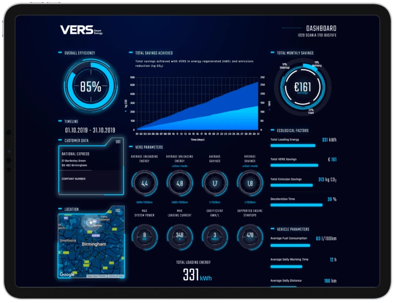 Стандартная мягкая гибридная система VERS может быть оснащена системой для мониторинга фактической экономии энергии.