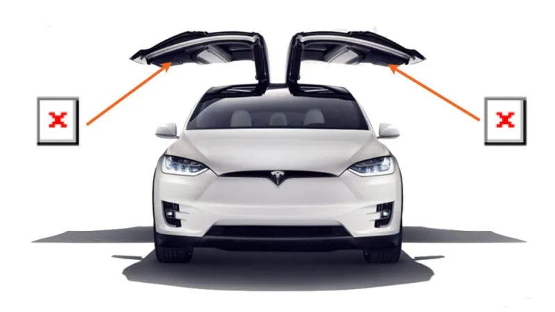 Автоматичні дверцята Тесла складаються із двох частин із рухомим з’єднанням і називаються «соколиним крилами». Вперше незвичайні дверцята-крила отримав кросовер Tesla Model X.