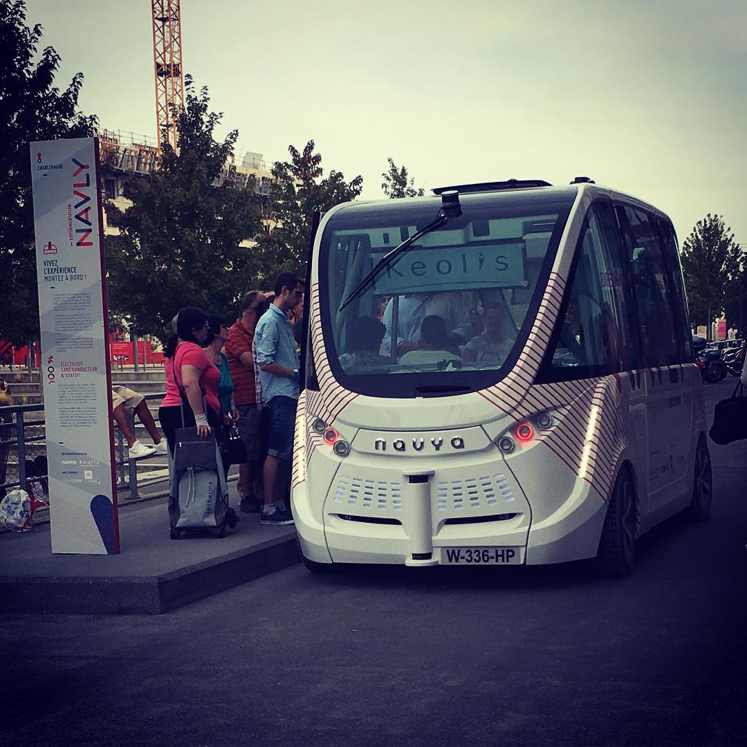 У тестовому режимі використовуються два автобуси. Маршрут протяжністю 1,3 км прокладено в центральному районі Конфлюйон, він має п’ять зупинок. Автономний громадський транспорт долає його за 10 хвилин. Автобус Navya оснащений електромотором. Його максимальна швидкість обмежена 20 км/год.