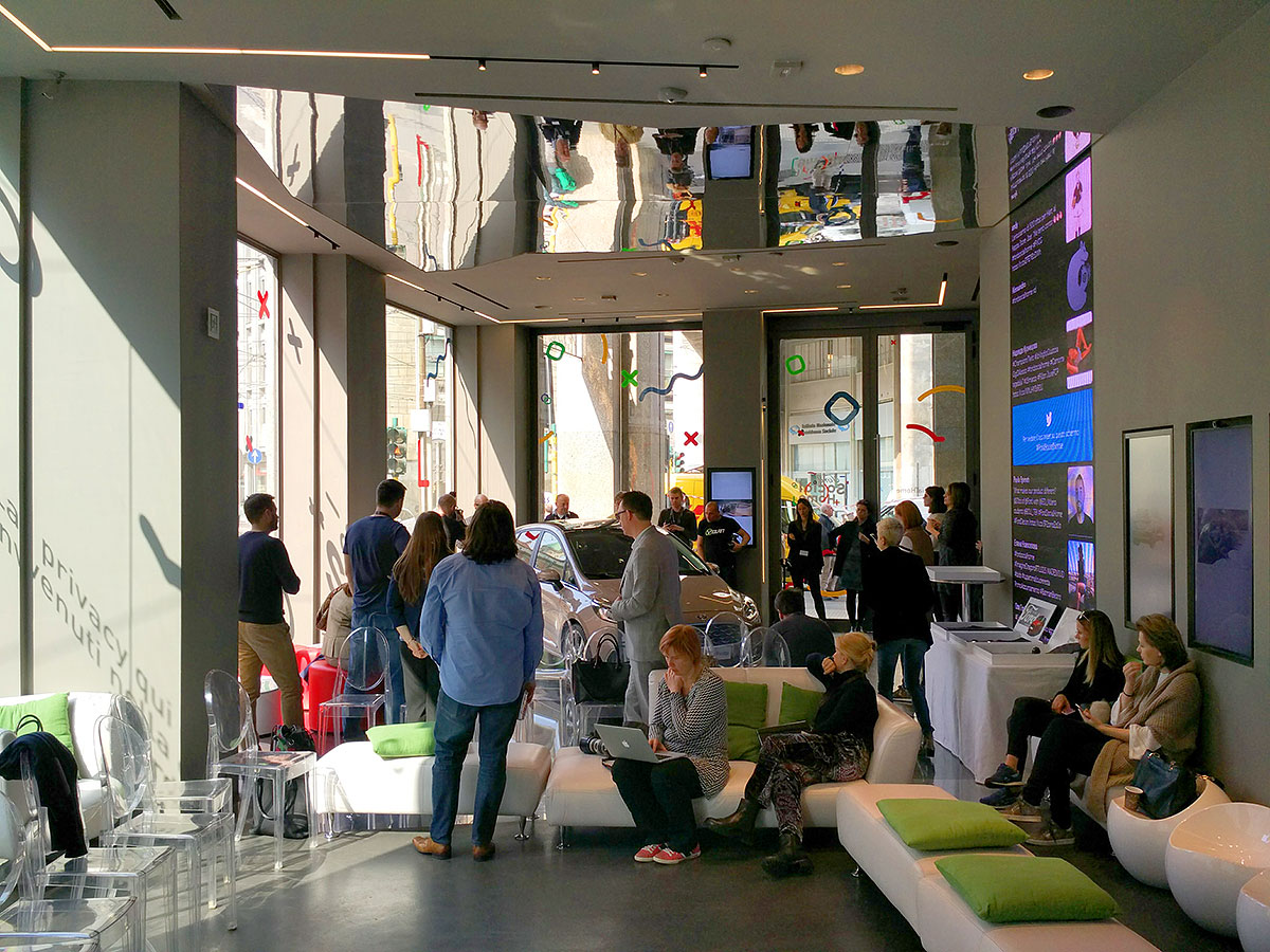 Лекція про автомобільну красу выдбулася в Мілані, в Ford Social Home – невеликому шоурумі, декорованому великими екранами з нескінченною кількістю твітів різних небайдужих громадян.