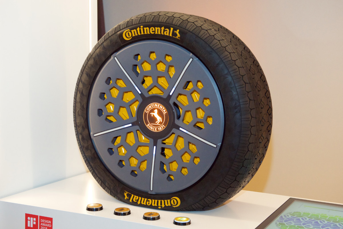 Помимо этого инженеры Continental представила шину с двумя токопроводяшими слоями, которые подключены к датчикам и позволяют контролировать давление в шинах, степень ее нагрева и величину износа протектора.
