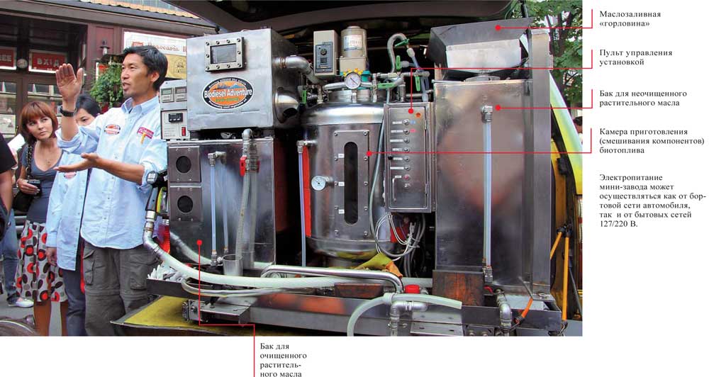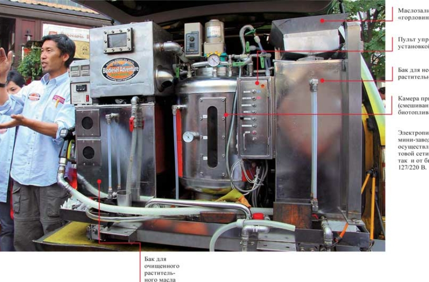 Биодизельное топливо заправляется в бак напрямую из мини-завода, без использования каких-либо отстойников. | |