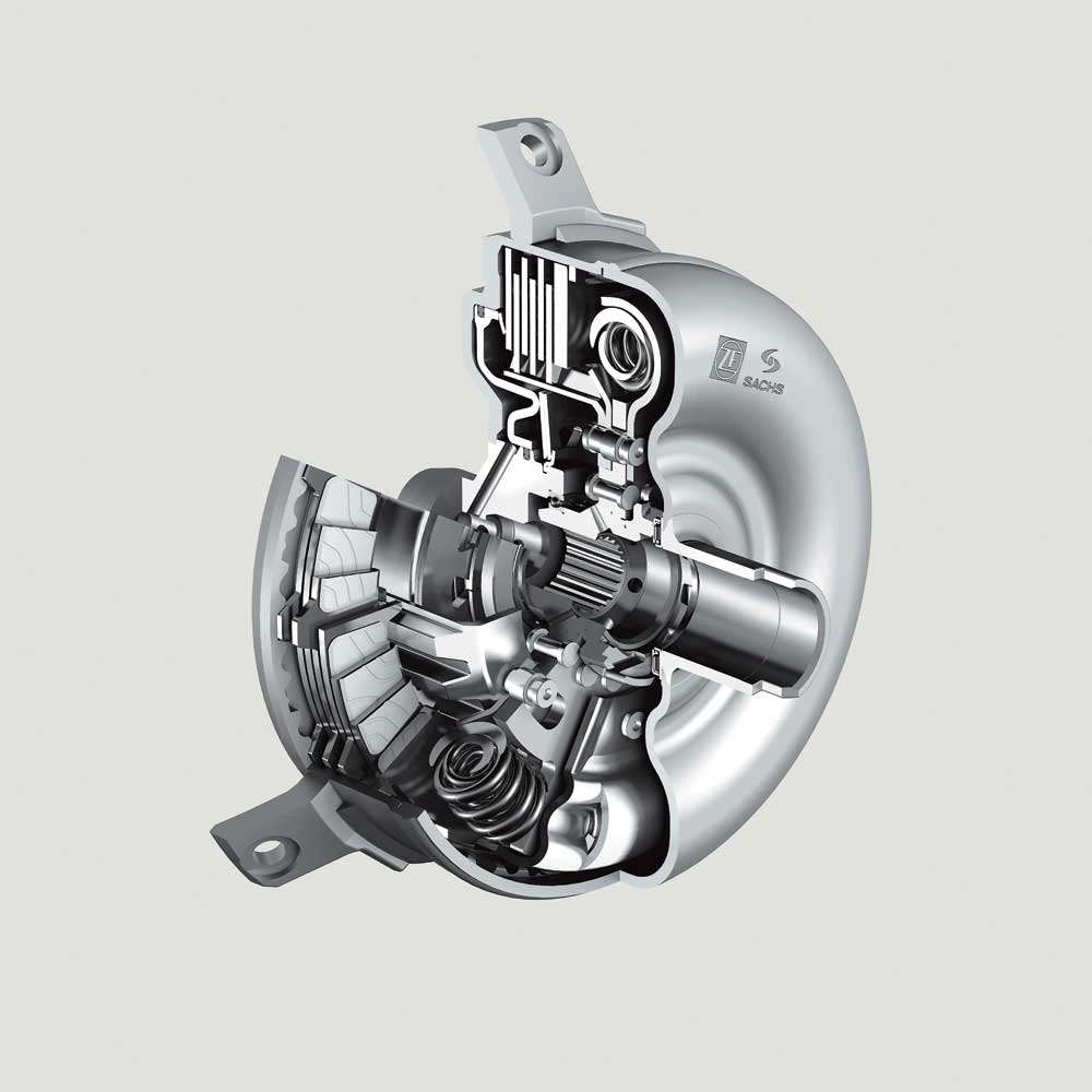 Компания ZF Sachs представила гидродинамическое сцепление с охлаждением (hydrodynamically cooled clutch – HCC), которое, по утверждению создателей, имеет быстродействие, сравнимое с работой двойного сцепления, используемого в коробках передач DSG. Новое сцепление придет на смену гидротрансформаторам, которые применяются в классических «автоматах» и вариаторах (CVT). Конструктивно новый узел представляет собой «мокрое» многодисковое сцепление с гасителем крутильных колебаний, внутри которого создается уникальный автономный кругооборот масла, называемый «эффектом HCC». Благодаря улучшенному охлаждению новое сцепление может передавать крутящий момент большой величины без опасности перегрева и вспенивания масла. Кроме того, новая конструкция легкая и компактная, поэтому потери энергии мотора на раскручивание этого узла при разгонах исключаются. Это позволит придать классическим автоматическим трансмиссиям спортивные настройки, т. е. их можно будет успешно применять в спортивных автомобилях. Возможна также компоновка данного механизма с гибридными силовыми установками, в которых электродвигатель размещен между ДВС и трансмиссией. Первым новое сцепление «примерит» Mercedes SL 63 AMG Roadster, оснащенный 520-сильным V8, выдающим огромный крутящий момент – 630 Нм.