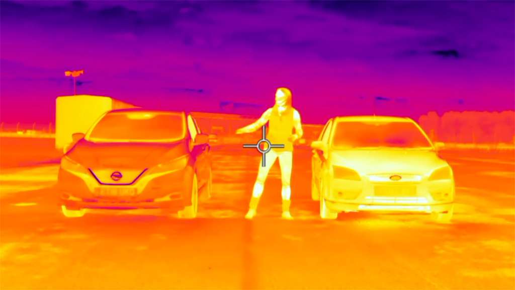 У короткому відеоролику електромобіль Nissan Leaf і дизельний Ford Focus просвітили термальною камерою. Як ми бачимо, авто з ДВЗ світиться набагато яскравіше, що свідчить про великі енерговтрати.