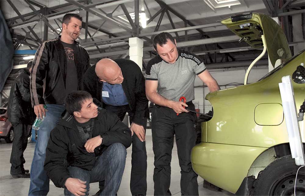 Технологии восстановления кузовных деталей без нарушения покраски Paintless Dent Repair (PDR) все чаще приходят на смену традиционной рихтовке. Отличие в том, что удаление вмятин по технологии PDR позволяет провести ремонт, сохраняя заводское (оригинальное) лакокрасочное покрытие детали. Для этого применяется специнструмент, но главное условие успеха – правильная техника работы. Донецкая компания AutoShield.Ukraine, которая одной из первых начала применять технологию Paintless Dent Repair в Украине, обобщая существующий опыт и методики, провела международный семинар для специалистов по беспокрасочному удалению вмятин. Занятия проводили мастера-практики из США, работники компаний – партнеров AutoShield.Ukraine. В течение трех дней специалисты из Украины, России и Беларуси, уже обучавшиеся в компании AutoShield.Ukraine, бесплатно осваивали передовые приемы PDR и приобретали новые знания по ведению бизнеса в этой области.