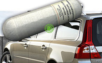 До недавнего времени одной из проблем использования газобаллонного оборудования для работы ДВС на сжатом природном газе (Compressed Natural Gas – CNG) были тяжелы стальные баллоны, которые рассчитаны для хранения газа под высоким давлением. Из-за этого значительная часть энергии двигателя тратилась на перемещение этого веса в пространстве, поэтому в случае с легковым автомобилем это было экономически нецелесообразно. Однако эту проблему удалось решить компании Gastank Sweden AB, специализирующаяся на производстве газовых баллонов. Они представили миру баллон из высокопрочного стекловолокна Hiper-Tex. По словам создателей, баллон из новых материалов способен выдерживать большие ударные нагрузки. На данный момент ежегодно ГБО для работы на сжатом газу устанавливается почти на 2 млн. автомобилей в мире. Ранее каждый такой автомобиль вооружали несколькими тяжелыми стальными баллонами (до 4-х). Теперь такая необходимость исключена, а внедрение легких баллонов позволит ежегодно иметь 18-ти процентный прирост машин на сжатом природном газе. В особенности эта разработка будет интересна автопроизводителям, которые борются за снижение каждого лишнего килограмма веса автомобиля.