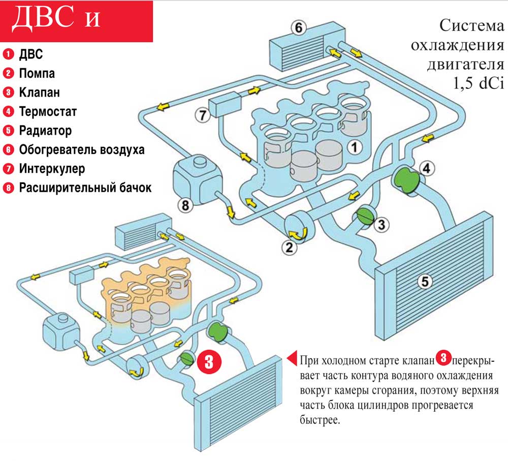 За последние десятилетия эффективность и экологичность ДВС существенно улучшились. В качестве примера возьмем дизельный мотор Renault Laguna. В 1995 г. его объем достигал 2,2 л, а мощность – 115 л. с. Сегодня объем агрегата снизили до 1,5 л, а мощность составляет 110 л. с. При этом средний расход топлива уменьшился с 7,2 л до 4,7 л/100 км, а выбросы СО2 в атмосферу сократились со 190 до 122 г/км! Но инженеры компании Renault считают, что это не предел для нового 1,5-литрового турбодизеля семейства dCi. Ими реализовано несколько методов снижения вредных выбросов: уменьшение размера двигателя за счет меньшего хода поршня, рациональное использование энергии выхлопных газов, оптимизация температуры мотора при «холодном» старте, автоматическая очистка фильтра тонких частиц каждые 1500 км, а также оптимизация процесса сгорания за счет создания вихреобразных потоков в камере сгорания. Так, если ранее часть выхлопных газов в системе рециркуляции поступала в камеру сгорания из выпускного коллектора, то теперь они проходят через фильтрующий элемент, охладитель, смешиваются с воздухом, потом снова охлаждаются и лишь после этого подаются в камеру сгорания. Кроме того, если ранее при запуске холодного двигателя охлаждающая жидкость циркулировала по малому контуру, то теперь специальный клапан отсекает ту часть контура, которая охлаждает верхнюю часть блока и головку цилиндров. Так мотор быстрее выходит на рабочую температуру. Еще один помощник в экономии топлива – новая, более эффективная 6-ступенчатая роботизированная КП с двумя сцеплениями EDC. Она разработана совместно с немецкой компанией Getrag. В отличие от аналогичной 6-ступенчатой КП DSG, применяемой на автомобилях концерна Volkswagen, в конструкции EDC используются «сухие» сцепления вместо пакетов «мокрых» фрикционов, что дает возможность минимизировать потери и уменьшить массу узла. EDC позволяет передавать крутящий момент до 240 Нм, а вес КП вместе с двухмассовым маховиком составляет 82 кг (против 93 кг у DSG). Трансмиссия EDC будет первоначально работать в паре с турбодизелем dCi 110 DPF. Этот тандем установят на все варианты модели Megane, Scenic и Grand Scenic.