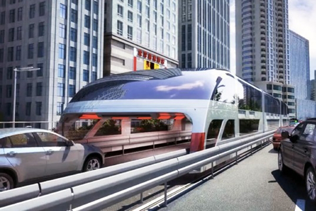 Новый тип общественного транспорта, под которым могут ездить автомобили, показали в Китае