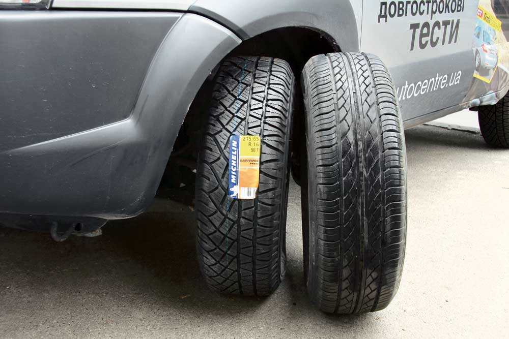 Да, такие шины можно подобрать, но не обернется ли это потерей свойств на асфальте? Что мы и решили проверить, подыскав в продаже шины с частично внедорожным рисунком протектора. Так как мы отправились за покупкой в конце сезона установки летних шин, большого выбора не было, поэтому взяли первые попавшиеся покрышки с более внедорожным рисунком протектора – Michelin Latitude Cross по цене 1360 грн. за одно колесо.