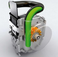 От предшественников новинка отличается тем, что в ней вместо металлического механизма, передающего усилие натяжения ремня, используется специальный эластичный (резиновый) «поршень», который входит в зацепление с шестерней катушки ременного натяжителя.