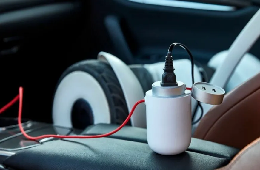 Mi Car Inverter – это компактный симпатичный аппарат, выполненный в форме белоснежного бочонка. Его удобно размещать на ручках автокресла или устанавливать в подстаканник.