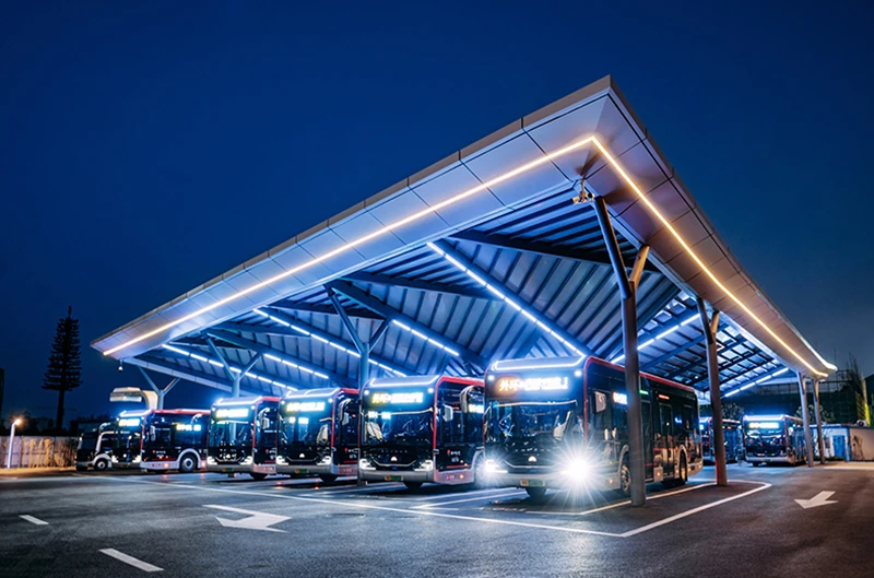 В рамках демонстрации своего «Интеллектуального мобильного решения с поддержкой 5G» Yutong также продемонстрировала интеллектуальный автобусный терминал, где автобусы паркуются, заряжаются, и отправляются без участия человека.