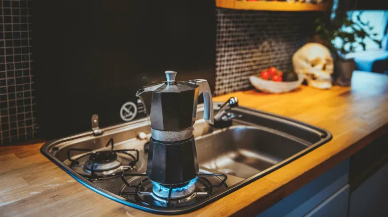 Кухня была собрана из мебельных блоков IKEA. Главным приоритетом стала безопасность, поэтому был установлен датчик, который отключает подачу газа в случае утечки.